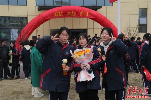 宣誓活动结束后,高三师生们信心满满地从成功门走出,参会的家长给孩子送上鲜花、合影与祝福。