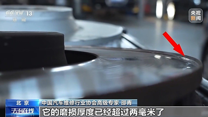中国汽车维修行业协会高级专家 邵青:我们这摆的是两个刹车盘,这是一个新的刹车盘,它是铸铁材料。刹车盘的磨损一旦出现了像我面前旧盘一样,它的磨损厚度已经超过两毫米了,那我们就可以判断这个车的行驶里程至少在8万到10万公里。比如说司机经常接触的门把手、方向盘、脚踩的踏板,还有座椅以及挂挡杆,这些位置公里数越多,磨损越大。如果车商把这些位置换成了新的部件,或者是重新进行了翻新,我们也可以通过专业人士一眼就能识别得出来。