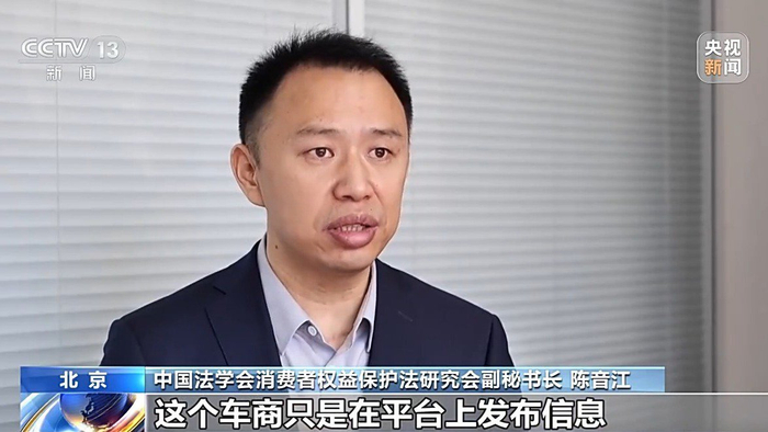 中国法学会消费者权益保护法研究会副秘书长 陈音江:当然二手车的平台,这个车商只是在平台上发布信息,这个平台在这种情况下,它可能主要是起到一个对车辆的这种资质进行审核,避免它给消费者造成伤害。你没有采取相应措施导致消费者权益受到损害的,你平台可能要承担连带的责任。