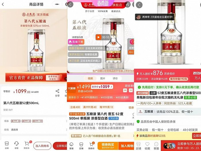 其次是打法。茅台在2016年曾经发布声明称,低于860元的普茅可能涉及低价倾销及假冒伪劣,建议谨慎购买。矛头直指当时正热的白酒垂直电商。8年之后,五粮液也发布了类似声明。