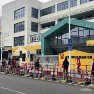 深圳坪山区某幼儿园,家长在等待孩子放学