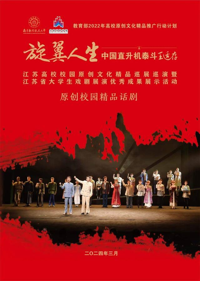 3月18日下午,省教育厅、省委宣传部在江苏大剧院正式启动江苏高校校园原创文化精品巡展巡演暨江苏省大学生戏剧展演优秀成果展示活动。来自南京航空航天大学的优秀原创校园话剧《旋翼人生:中国直升机泰斗王适存》拉开了巡展巡演的帷幕。