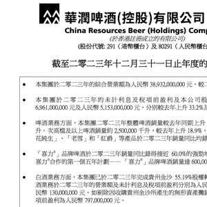 华润啤酒2023年靠“啤+白”策略营收盈利双增