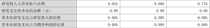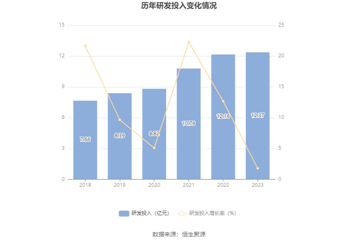 2023年全年,公司研发投入金额为12.37亿元,同比增长1.78%;研发投入占营业收入比例为9.02%,相比上年同期上升1.02个百分点。此外,公司全年研发投入资本化率为0。