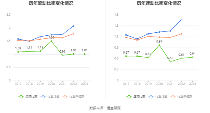 2023年,公司流动比率为1.01,速动比率为0.64。