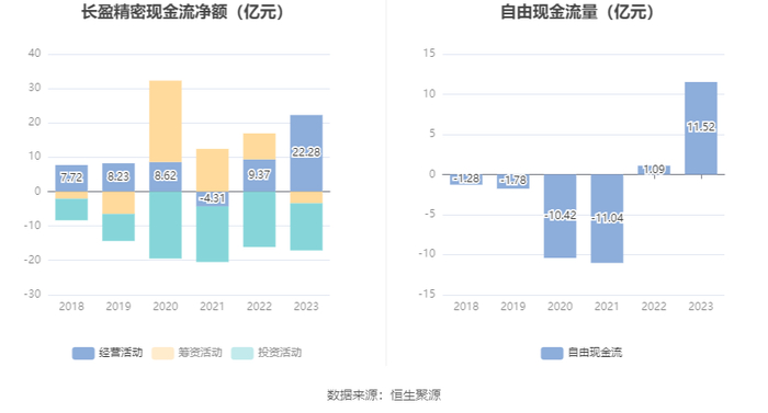 进一步统计发现,2023年公司自由现金流为11.52亿元,相比上年同期增长954.30%。