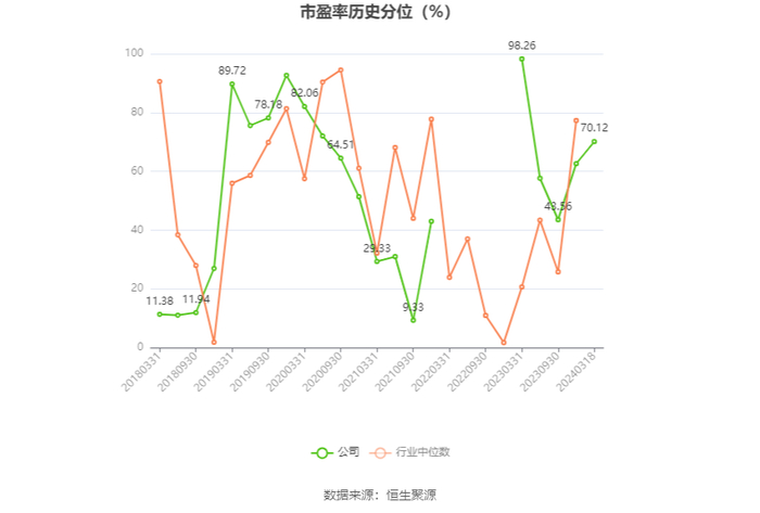 市盈率为负时,不显示当期分位数,会导致折线图中断。