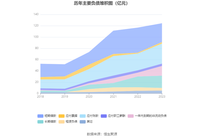 负债重大变化方面,截至2023年年末,公司短期借款较上年末减少25.19%,占公司总资产比重下降7.38个百分点;一年内到期的非流动负债较上年末增加155.84%,占公司总资产比重上升5.45个百分点;应付账款较上年末增加19.27%,占公司总资产比重上升2.19个百分点;长期借款较上年末增加14.11%,占公司总资产比重上升0.87个百分点,主要系新增固定资产项目贷款及流动资金贷款。