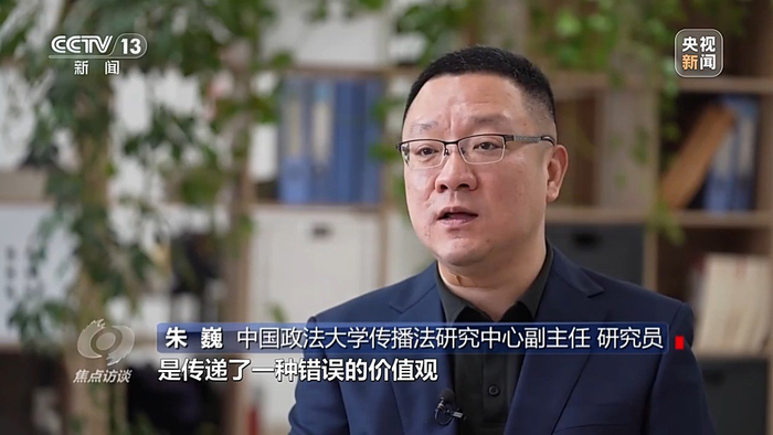 中国人民大学法学院教授、中国法学会网络与信息法学研究会副会长 张新宝:“自媒体创作不能为了获得流量哗众取宠、编造虚假事实、蛊惑不明真相的人,或者欺骗社会公众。中央网信办专门发布过规定,要求对非真事实的、虚构的或者摆拍的一些视频内容进行标注,以满足社会公众的知情权。如果违反了国家规定的行为,有其他严重违法情节,比如宣扬暴力、危害公共安全或者侵害他人合法权益,就有可能违反了刑法或者民法的有关规定、行政法的有关规定,需要依法承担相应的法律责任。”