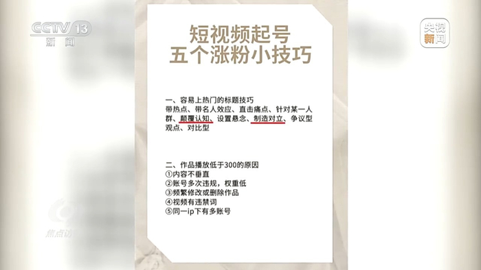 通过制作优质短视频吸引粉丝并带货,这本身无可非议,但是在利益诱惑下,一些短视频的博主却不惜造假来摆拍各种博人眼球的视频,获取流量变现,而有些短视频带货的培训机构推出的涨粉技巧更是包括“颠覆认知”“制造对立”“抄袭素材”等不正当手段。