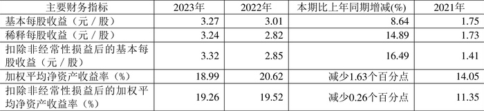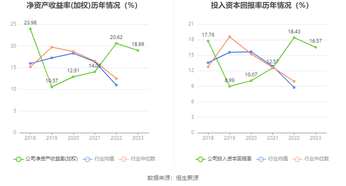 数据显示,2023年公司加权平均净资产收益率为18.99%,较上年同期下降1.63个百分点;公司2023年投入资本回报率为16.57%,较上年同期下降1.86个百分点。