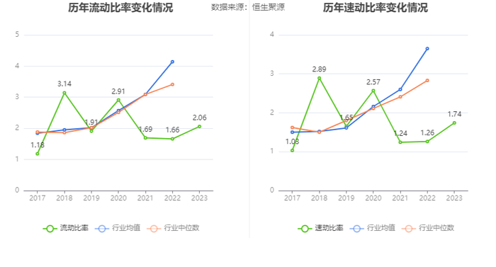 2023年,公司流动比率为2.06,速动比率为1.74。