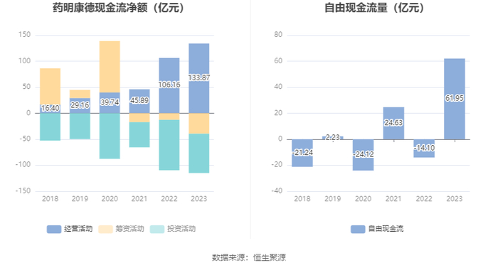 进一步统计发现,2023年公司自由现金流为61.95亿元,上年同期为-14.10亿元。