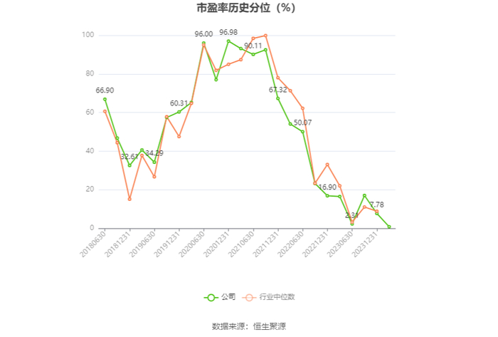 市盈率为负时,不显示当期分位数,会导致折线图中断。