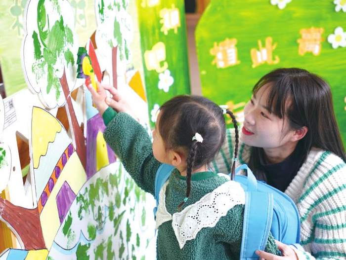 除了种植小树苗,部分学校和幼儿园还开展了别开生面的植树节主题教育活动。3月12日,南宁市林里桥中段幼儿园及佛子岭园区开展了“手植绿意春满心田”植树节护绿、植绿活动。各班通过绘本故事、儿歌、情景表演等主题教育活动,让孩子们了解植树节的来历,知道了爱护树木、保护环境的重要性。