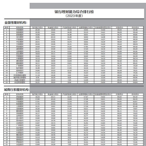 普益标准发布2023年度银行理财能力排名:全国性理财机构发行能力表现良好农村金融理财机构需持续提升投研能力
