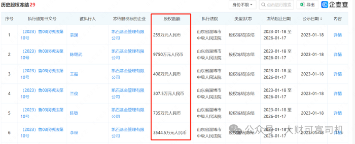 买卖不成仁义在,好聚好散。但是从2023年初山东省淄博市中级人民法院冻结凯石基金自然人股东股权,可以看出双方并不是在和谐融洽的氛围中告别的。
