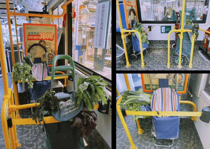 坐巴士,菜篮子也有专属座位