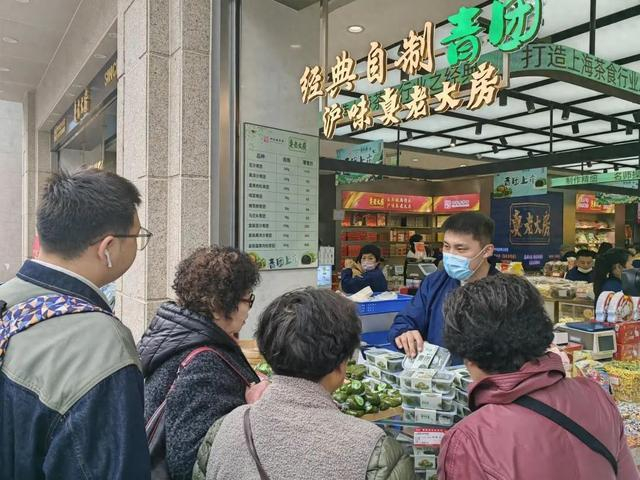 市民张先生告诉记者,真老大房是他从小吃到大的牌子,无论是鲜肉月饼还是熟食,都是家里餐桌上的常客。今天正好路过南京路,看到青团上市,就给爸妈买了传统的豆沙口味,自己则想尝尝马兰头风味,“马兰头叠加青团,就是十足春天的味道。”