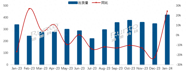 近期,第三方权威机构洛图科技发布了《中国电视市场品牌出货量月报数据》,显示今年1月,中国电视市场出货量达到了419万台,同比大幅增长24.4%。整个市场发展态势良好,预示着2024国内电视市场将全面复苏。