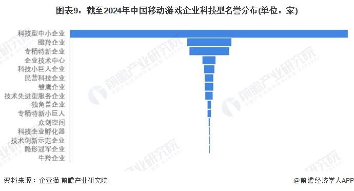 移动游戏企业中科技型中小企业和专精特新企业较多