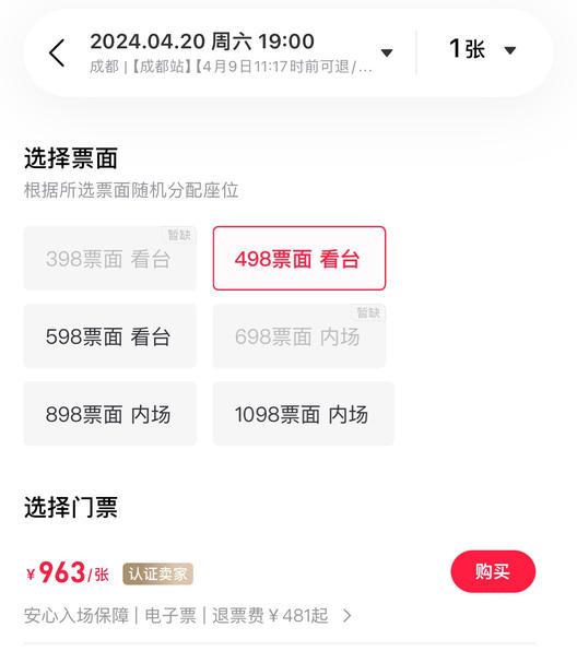 买票如同开盲盒 上千的门票不能选座位