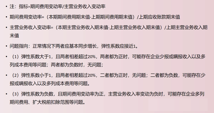 如果企业期间费用变动率与收入变动率相差超过20%,也可能被重点关注。