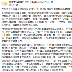 3月18日,据香港TVB(无线电视)娱乐新闻台报道,资深反派演员陈狄克于上周五(3月15日)因病去世,享年76岁。