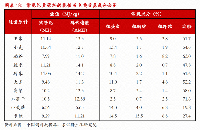 为了理解玉米替代品当前的“核心”+“边缘”格局的成因,从而展望未来替代弹性的变动趋势,需要以对能量原料的饲用价值有初步的了解。