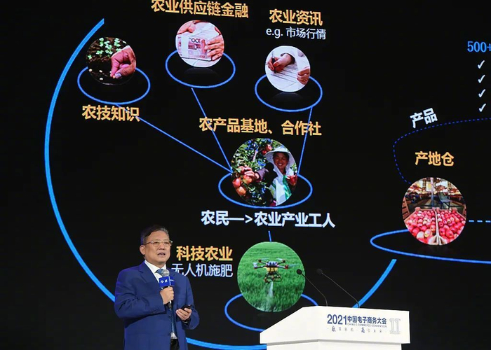 2021年,在服贸会2021中国电子商务大会上,盒马创始人兼首席执行官(CEO)侯毅在主论坛上作题为《新零售高质量发展创新探索》的演讲。| 图片来源:视觉中国 但是,从2023年以来盒马的一系列改革动作来看,它其实是有意识地要把运营重心一步步向线下门店倾斜,将消费者从App下单更多吸引到线下卖场。