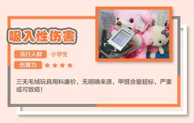 甲醛为无色气体,不要认为面料无异味就不会甲醛超标。通常来说,娃娃散发出的异味来自染料、固色剂等,而没有味道的甲醛亦在悄悄危害健康。它可是一级致癌物!