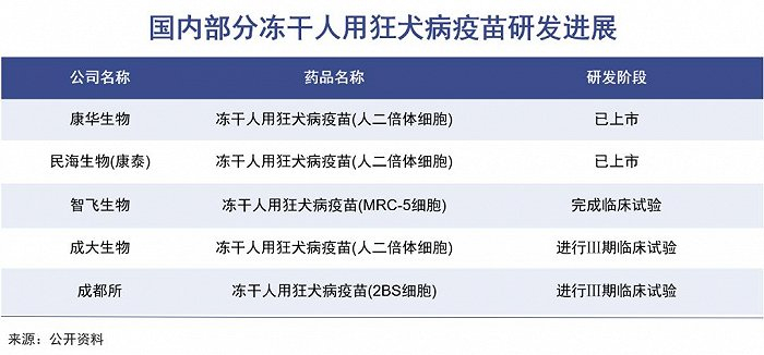 去年 9 月 15 日,康泰生物冻干人用狂犬病疫苗(人二倍体细胞)上市申请获得批准,打破了康华生物的独家优势。智飞生物、成大生物等企业也在奋力追赶。