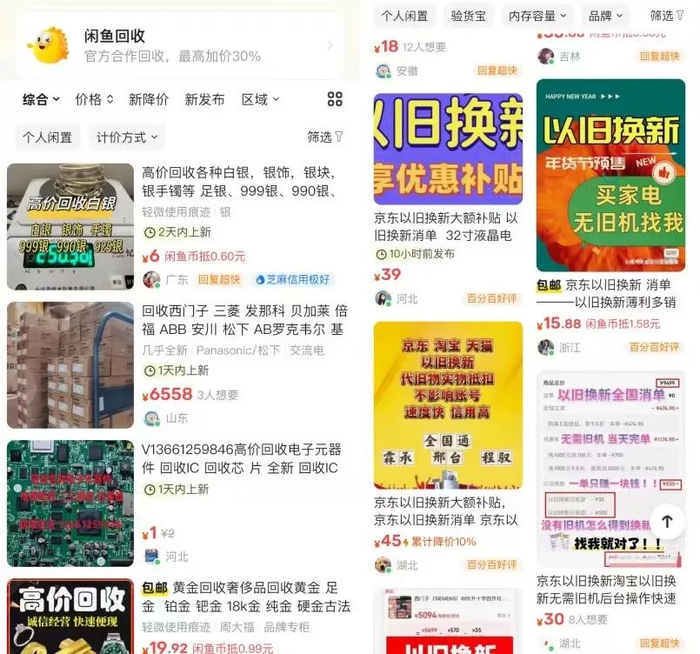 此前,闲鱼总裁丁健提到,“以旧换新”政策能激励消费者更换老旧产品,购买更加环保、节能、高效的新产品,将极大提升闲置物品的流通规模,让闲置交易行业迎来新一轮上升周期。