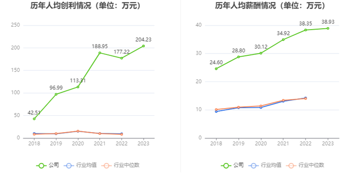 截至2023年末,公司员工总数为910人,同比增加27.63%,人均创收315.31万元,人均创利204.23万元,人均薪酬38.93万元,较上年同期分别增长15.96%、15.24%、1.52%。