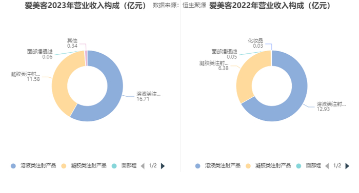 年报称,爱美客是一家从事生物医用材料及生物医药产品研发与转化的创新型领先企业,已成功实现基于透明质酸钠的系列皮肤填充剂、基于聚乳酸的皮肤填充剂以及聚对二氧环己酮面部埋植线的产业化,同时正在开展重组蛋白和多肽等生物医药的开发。