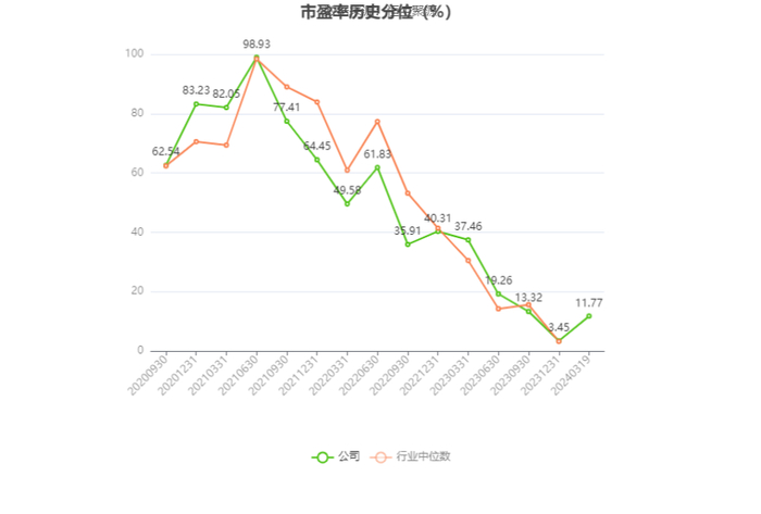 市盈率为负时,不显示当期分位数,会导致折线图中断。