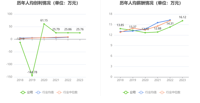 截至2023年末,公司员工总数为1321人,同比增加1.46%;人均创收211.60万元,人均创利25.76万元,人均薪酬16.12万元,较上年同期分别变化16.50%、-0.38%、12.71%。