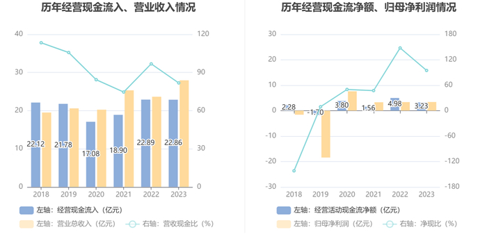 2023年,公司经营活动现金流净额为3.23亿元,同比下降35.19%;筹资活动现金流净额202.40万元,同比增加1049.59万元;投资活动现金流净额-3.90亿元,上年同期为-1.47亿元。