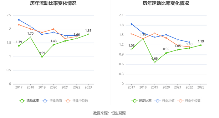 2023年,公司流动比率为1.81,速动比率为1.19。