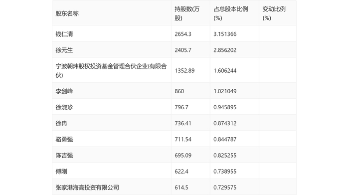 年报显示,2023年年末公司十大流通股东中,新进股东为傅刚、张家港海高投资有限公司,取代了三季度末的信澳匠心臻选两年持有期混合型证券投资基金、信达澳亚基金-北京诚通金控投资有限公司-信澳诚通金控4号单一资产管理计划。在具体持股比例上,李剑峰、骆勇强持股有所上升。