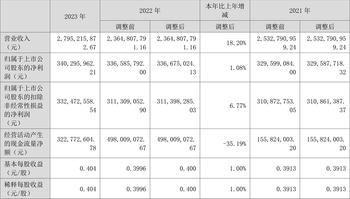 数据显示,2023年公司加权平均净资产收益率为9.67%,较上年同期下降0.91个百分点;公司2023年投入资本回报率为9.50%,较上年同期下降1.13个百分点。