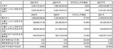 2023年度营业总收入400,639.86万元,较2022年度增加87,007.03万元,增幅27.74%;实现利润总额41,929.47万元,较2022年度增加20,882.09万元,增幅99.21%,净利润38,941.07万元(其中归属母公司股东的净利润为39,080.92万元),较2022年度增加18,705.68万元,增幅92.44%。