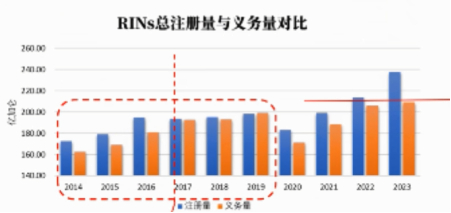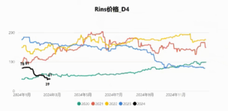 另外从RINS的利润传导上来讲,现在生物柴油二代和四代的生产利润都是下滑的。从生物柴油的价格指标来说,RINS价格基本上跌回到三年前的水平。现在的美豆油价格仍然是偏高的,对豆油不利。今年生柴政策看不到增量预期,有可能还是下滑的,因为欧盟对生柴的政策性是削弱的。