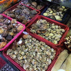 春天的生蚝肥美多汁、口感滑爽,个头较大的4元/个,更大的6元/个。各种螃蟹也活跃了起来。红蟹和花蟹的价钱分别为65元/斤和80元/斤。高端海鲜大龙虾比成人小臂还粗,每斤售价320元。体型硕大的象拔蚌按个销售,1个近4斤重,每个售价480元。