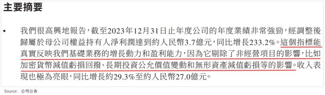 40多页的报告里,不仅多次出现"2023又是一个取得突破的年份""表现大超预期"等表述,而且花费大幅笔墨,强调盈利来自公司"真正的实力"。
