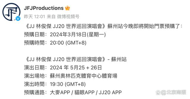 北京商报记者注意到,相较于周杰伦的“JayMe”,林俊杰的“JJ20”App的身影贯穿在其世界巡回演唱会售票的全程。