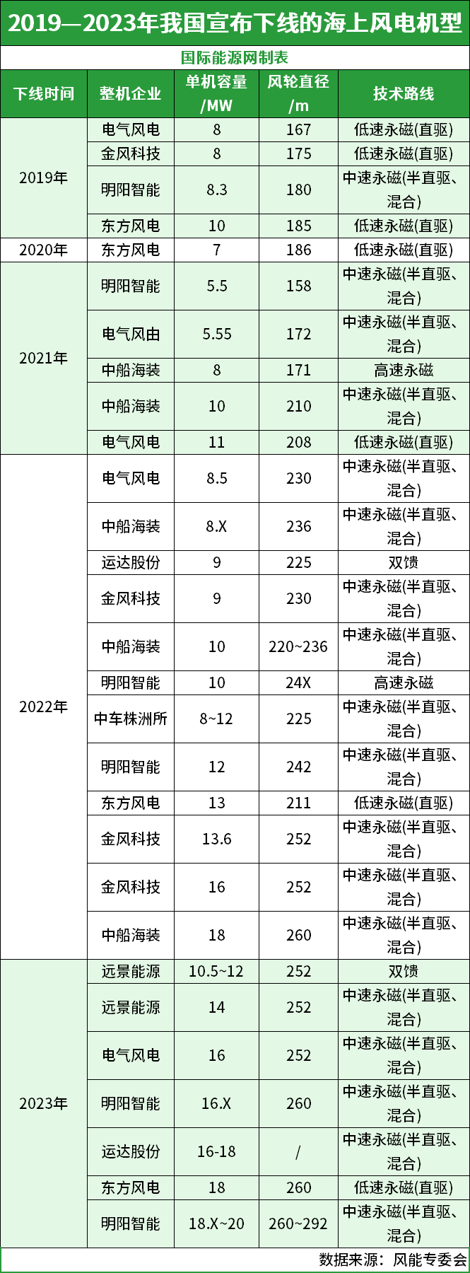 2022年2月,东方电气自主研制、拥有完全自主知识产权的 13 兆瓦抗台风型海上风电机组顺利下线,这是当时亚洲地区单机容量最大、叶轮直径最大的风电机组。