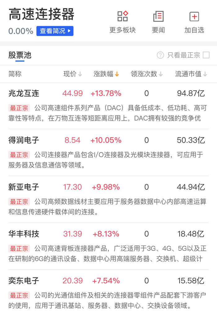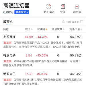 兴业证券在近期的研报中表示,随着AI等技术的发展及应用,数据中心对高吞吐和大带宽的需求越发迫切,看好高速背板连接器、高速IO连接器等高速连接器,作为数据中心系统互连关键硬件之一,预计将深度受益于AI算力的需求增长。