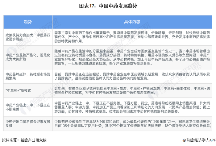 随着我国医保目录调整,中药的价值逐渐凸显,我国政策扶持力度亦加大。未来,重要发展有6大趋势: