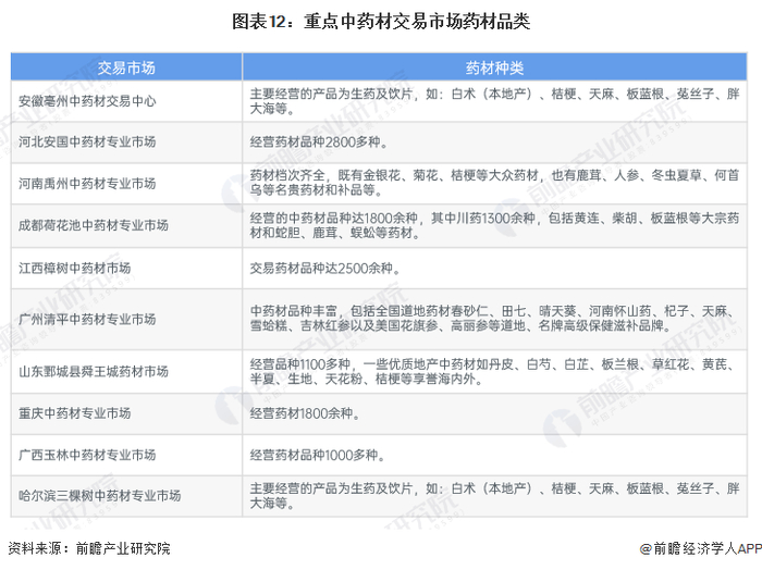 从中药交易市场来看,主要的交易中心分布在安徽、河南、四川、江西、重庆等内陆地带,且交易种类较多的地区为河北、江西、重庆等。